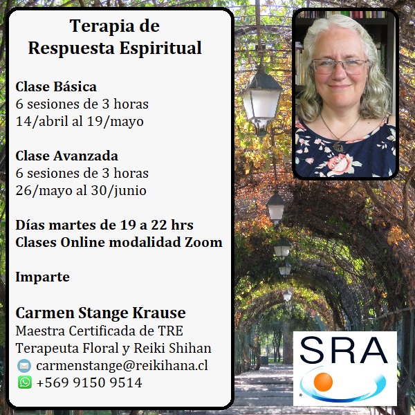 Terapia de Respuesta Espiritual (TRE): es una profunda limpieza de programas en los registros del alma o Akashicos trabajando con el Yo Superior, logrando así una mejor armonía en la vida cotidiana y ayudando a soltar el peso del pasado. Especialmente útil para cuando hay bloqueos y dificultades en esta vida que no nos podemos explicar o creencias que necesitamos cambiar, como la necesidad de sufrir, autoboicoteo, etc. Se busca la raíz de los bloqueos en vidas pasadas, otras vidas, el árbol familiar y hechos ocurridos en la vida presente o energías discordanes en el momento presente.